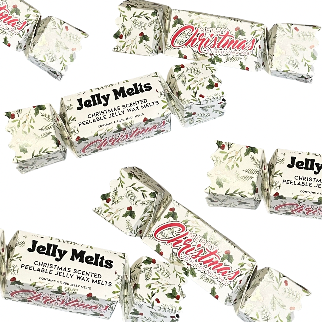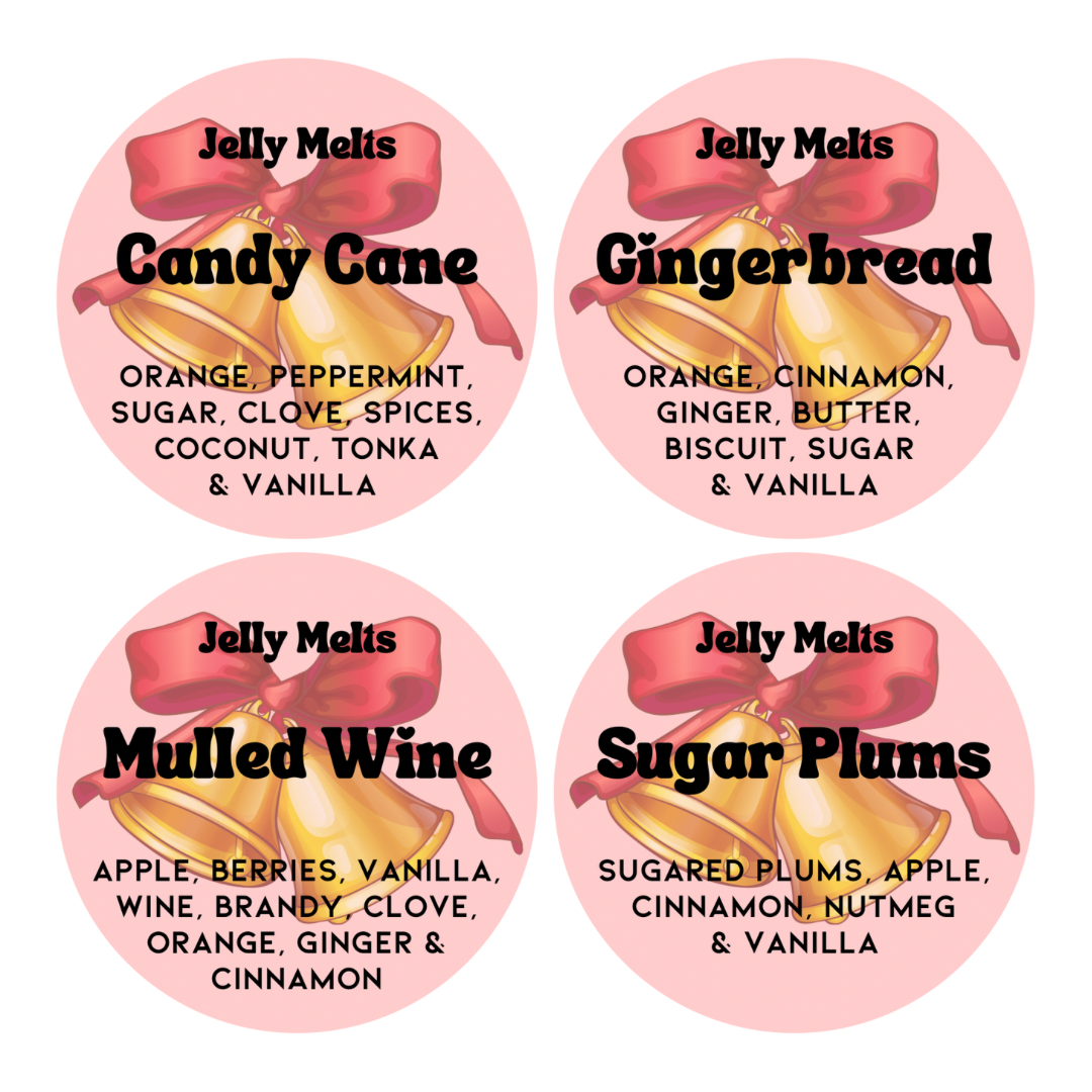 Description: The perfect gift this holiday season! Our Christmas Cracker includes 4 Christmas sample size Jelly Melts - scent descriptions stated below. That's up to 80 hours of burn time!! Our sample size Jelly Melts are approximately 20 grams in weight and will give you up to 20 hours burn time - the best time to remove your Jelly Melt is when you feel you can longer smell the fragrance. We recommend you flip your Jelly Melts in between burns (once the gel has cooled) as this disperses the scent evenly.