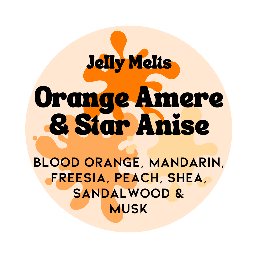 Scent Description: Our Orange Amere & Star Anise Jelly Melt has fresh invigorating top note of blood orange, mandarin and neroli supported by a heart of pink & yellow freesia, Osmanthus and peach resting on a sensual base of soft shea, sandalwood and musk.