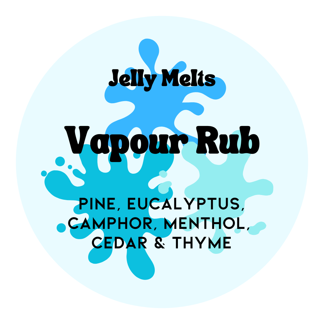 Scent Description: Our Vapour Rub Jelly Melt is similar in scent to the classic medicine. A cool hint of menthol sets the tone of this scent as a refreshing mint breeze mingles at the top. Aromatic notes of fresh thyme add strength to the heart, before softer notes of cedarwood bring the fragrance to a close.